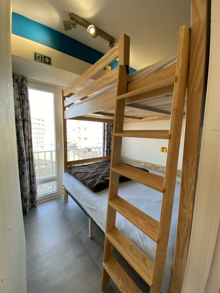 La chambre à coucher offre également une vue sur la mer. Quel plaisir d’ouvrir les volets électriques et d’avoir une vue sur la mer au bout de son lit. Celle-ci est composée d’un lit double de 140x200cm et d’un lit superposé de
